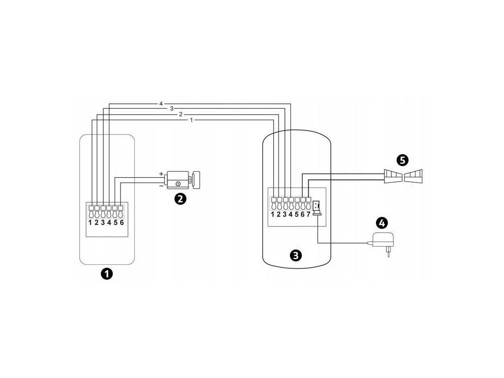 Schéma pripojenia pre súpravu hands-free interkomu EURA ADP-09A3 v čiernej farbe: