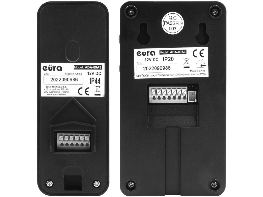 - Jednoduchosť obsluhy a inštalácie sa prejavuje v tom, že interkom EURA ADP-09A3 sa ľahko inštaluje a ovláda a jeho vodotesné puzdro poskytuje trvanlivosť a odolnosť voči poveternostným vplyvom (stupeň krytia IP44) čo je dôležité pre dlhú životnosť a prejavuje sa v dlhá životnosť interkomu!
