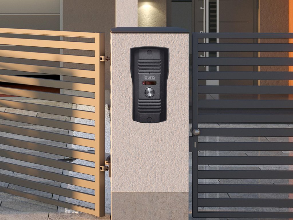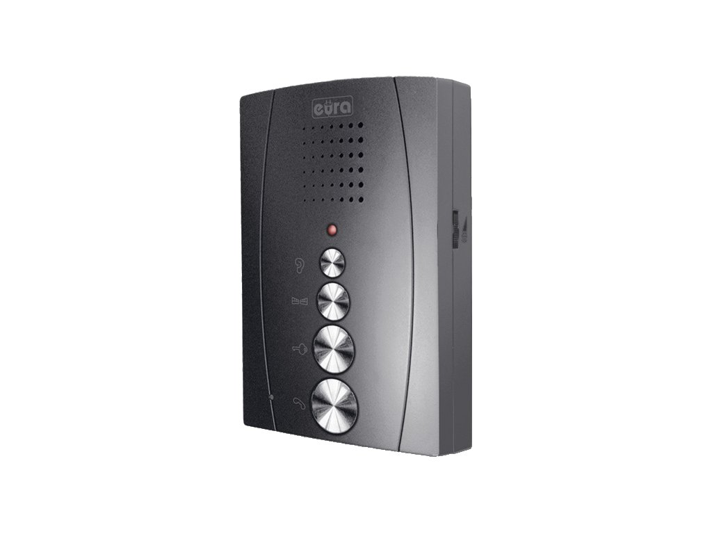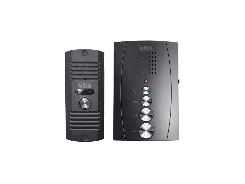 Interkom pre jednu rodinu - Zariadenie Eura ADP-12A3 Invito je vybavené grafitovým telefón s voľnými rukami , v malom meradle vonkajšia kazeta a napájanie 12 V DC .