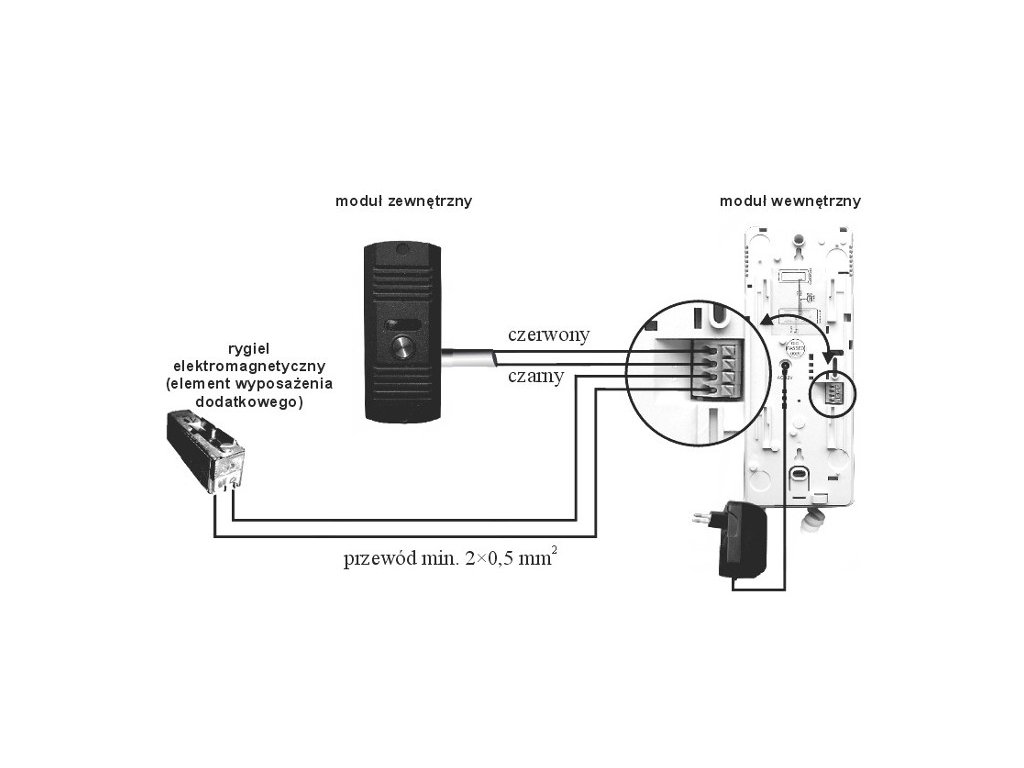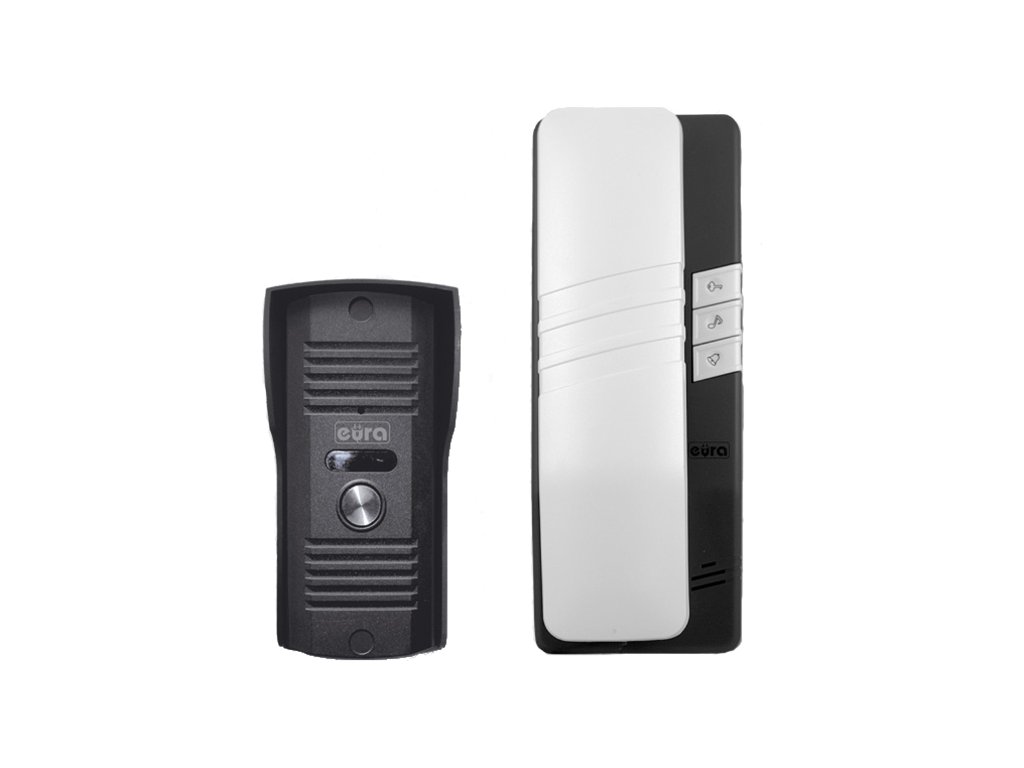 Interkomová súprava ADP-20A3 sa skladá z: externého modulu (dverový telefón), interného modulu (unifón) a napájacej jednotky.