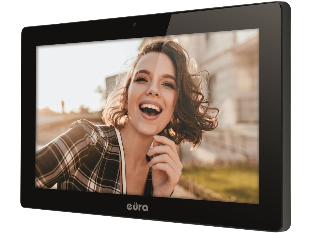 Eura VDA-86A3 čierny monitor vstupných dverí s 10" dotykovou obrazovkou - nahrávanie obrázkov, snímanie videí, využívanie videosignálu AHD