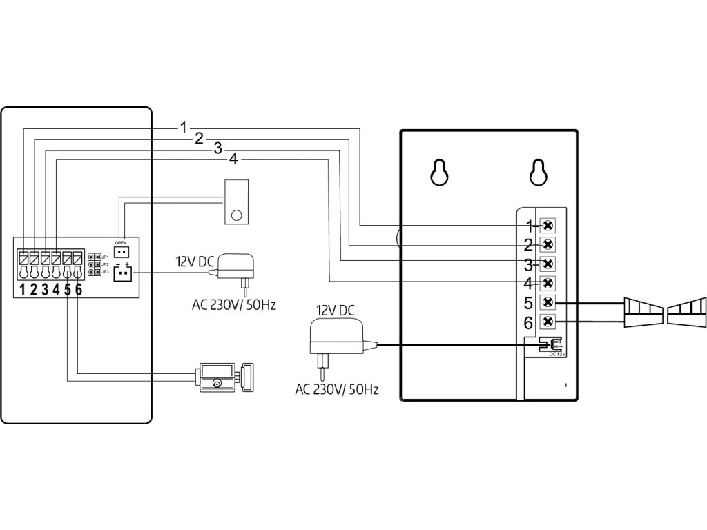 - Výstupné napätie pre elektromagnetický zámok 12 V DC + potreba pripojiť napájací zdroj ku kazete