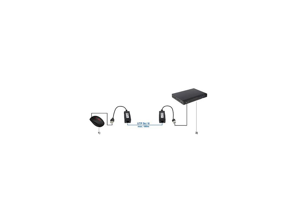 Predlžovací kábel USB myši cez UTP cat. 5/5e/6. Umožňuje ovládanie rekordéra myšou zo vzdialeného miesta. Maximálny dosah je 100 m (USB 1.1).