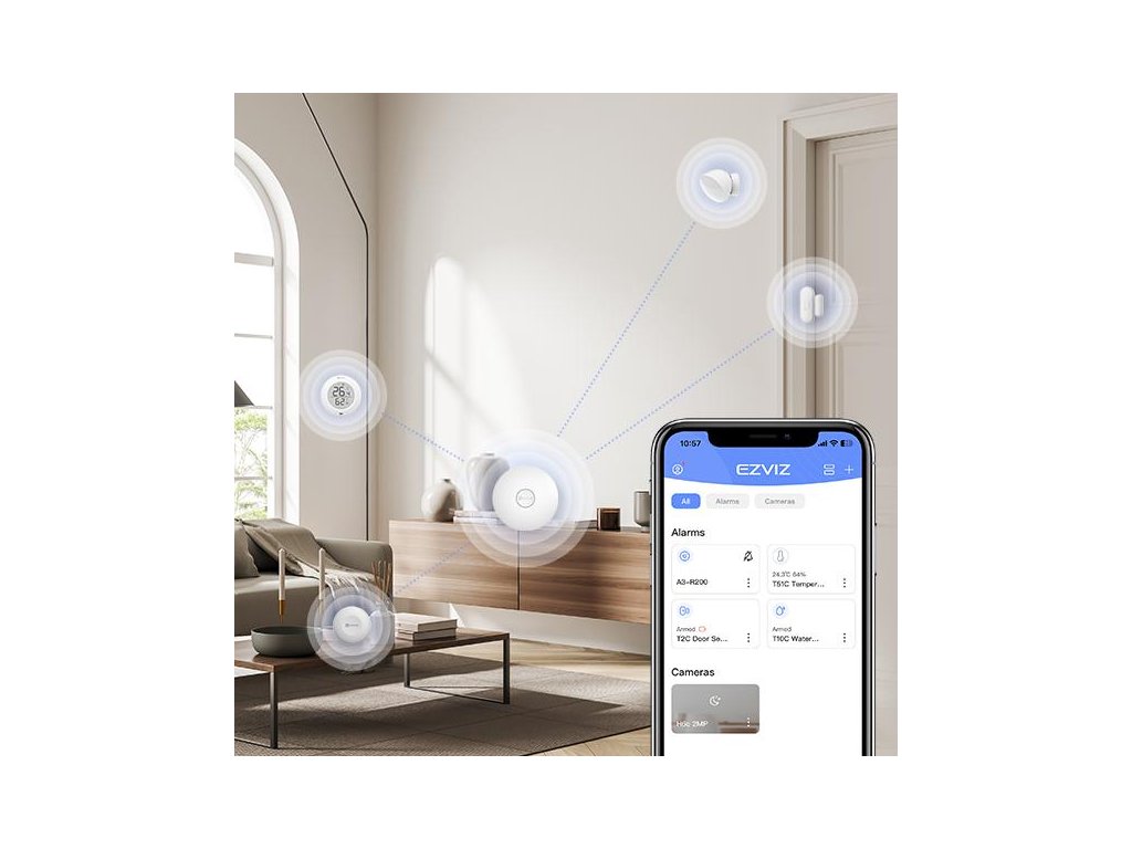 Pomocou zariadenia A3-R200 môžete bezproblémovo pridávať, ovládať a dokonca prispôsobovať svoj systém domácich senzorov EZVIZ. Pohodlne spravujte pripojené zariadenia priamo zo smartfónu.