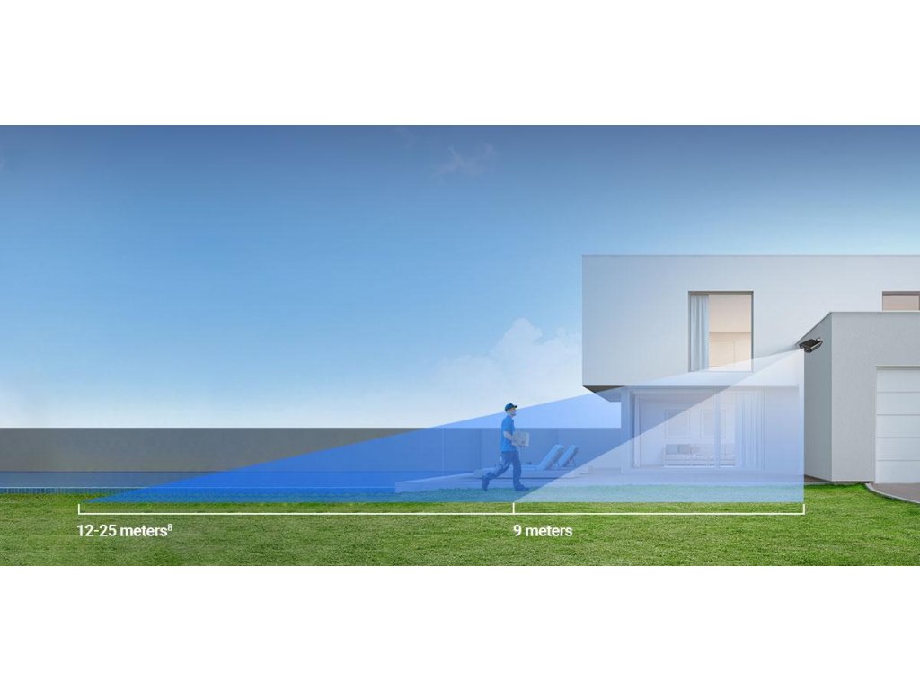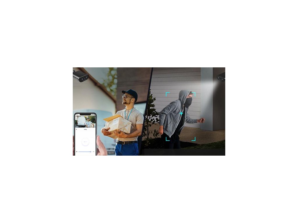- Aktívna obrana na odstrašenie a ochranu - Pri zistení narušiteľa kamera aktivuje hlasnú sirénu a zabliká dvoma oslepujúcimi svetlometmi⁷, čím upozorní celé okolie na vniknutie cudzích osôb.