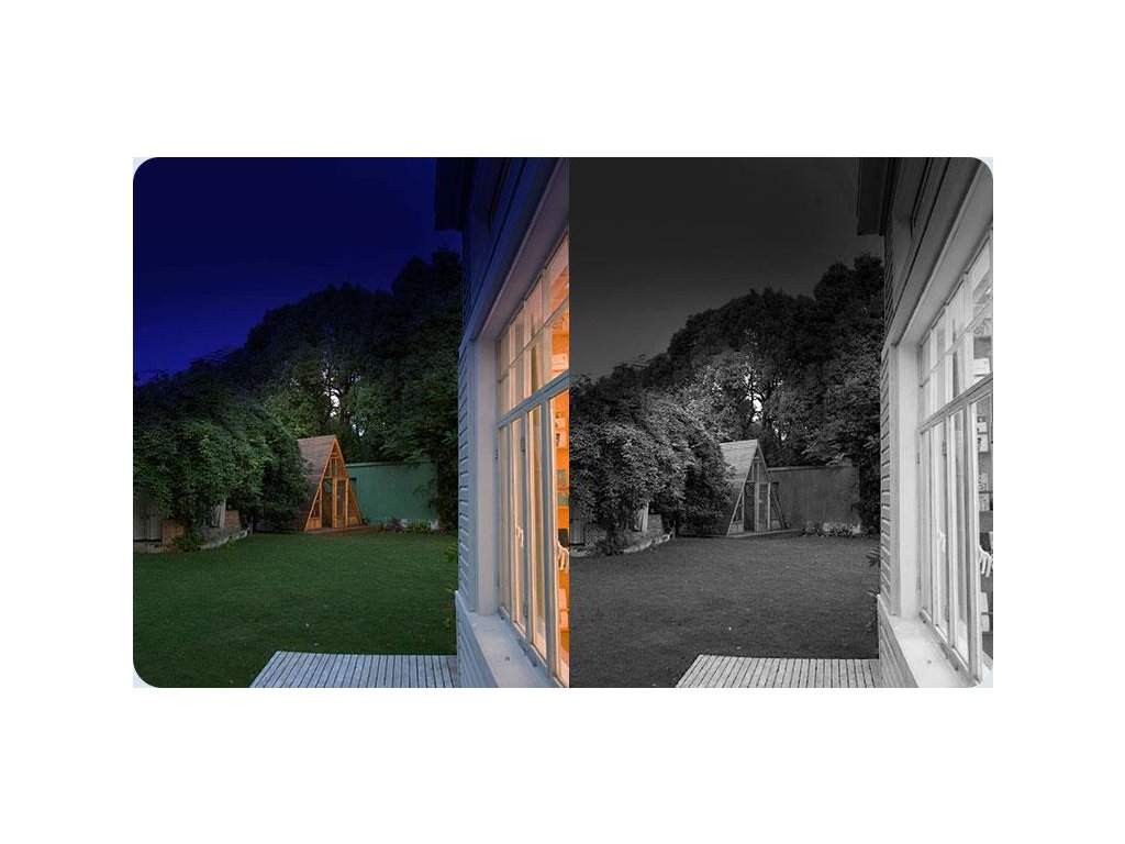 V inteligentnom režime je obrázok predvolene čiernobiely. Keď však kamera zistí pohyb človeka, aktivuje sa farebné pozorovanie s reflektormi, aby sa lepšie zachytil zdroj aktivity.