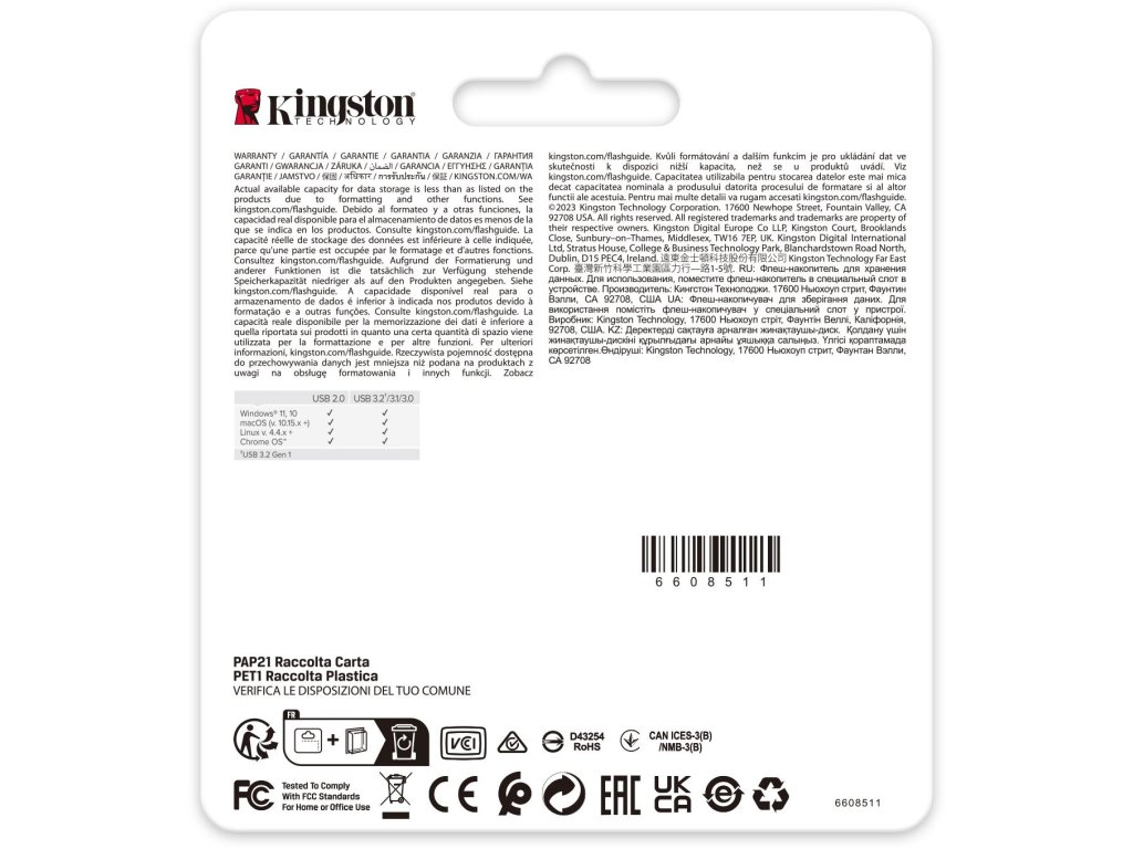 - Vysokorýchlostný prenos údajov: vďaka rozhraniu USB 3.2 Gen 1 môžete využívať rýchly prenos dát, čo znamená, že môžete prenášať súbory na pamäťovú kartu Kingston Data Traveler DTSE9G3 64GB USB 3.2 Gen 1 alebo z neho bez dlhého čakania. To je užitočné najmä pri prenose veľkých mediálnych súborov.