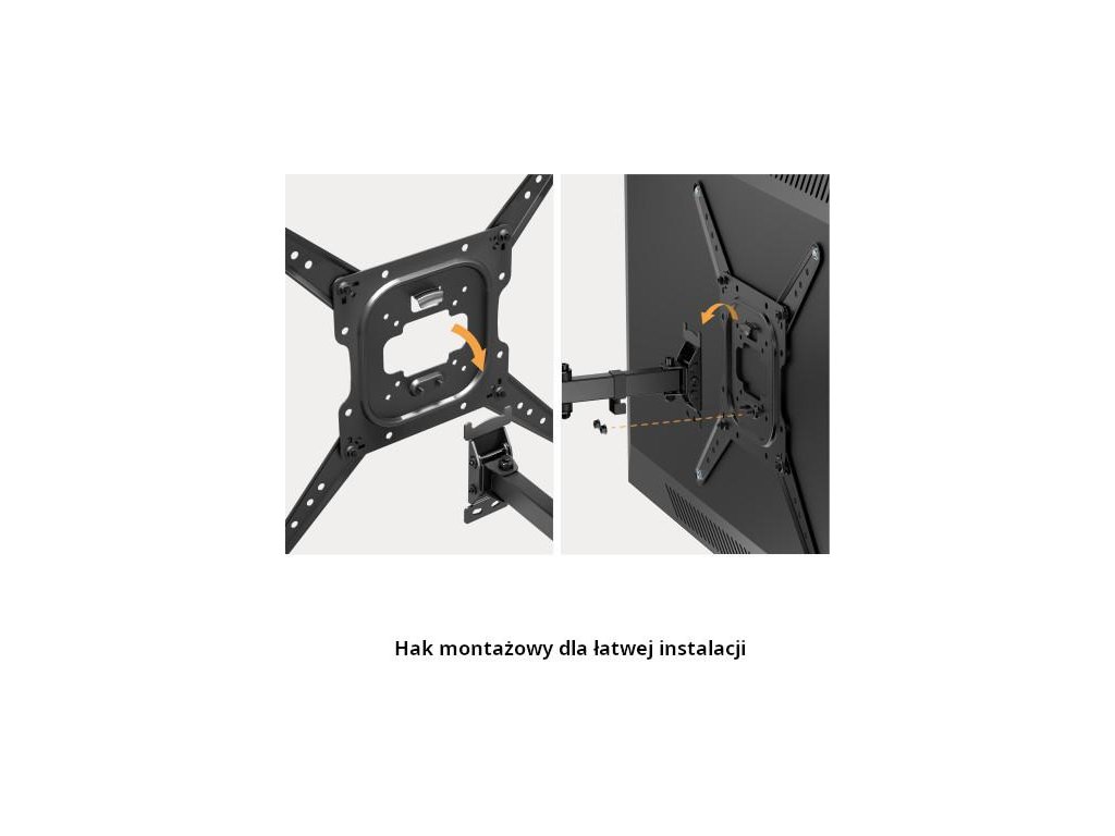 Plne nastaviteľný držiak Getfort GF-FM2365-30 umožňuje inštaláciu televízorov s uhlopriečkou 23-65 palcov a hmotnosťou do 30 kg. Vďaka vysoko nastaviteľnému dosahu, natočeniu a náklonu umožňuje optimálne nastavenie pozície sledovania. Vďaka montážnemu háku je zavesenie obrazovky oveľa jednoduchšie.