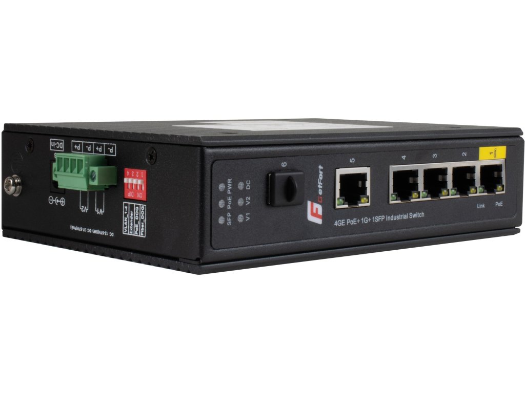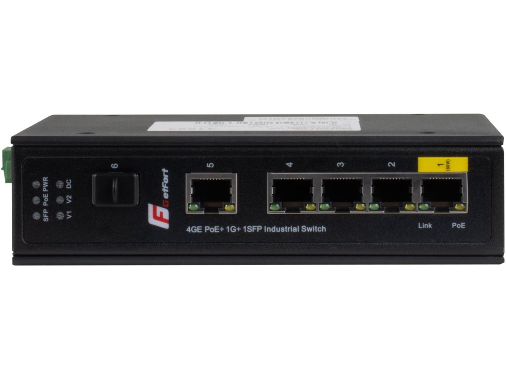 GETFORT PRIEMYSELNÝ POE SWITCH 4GE+1GE+1SFP (-40/80)