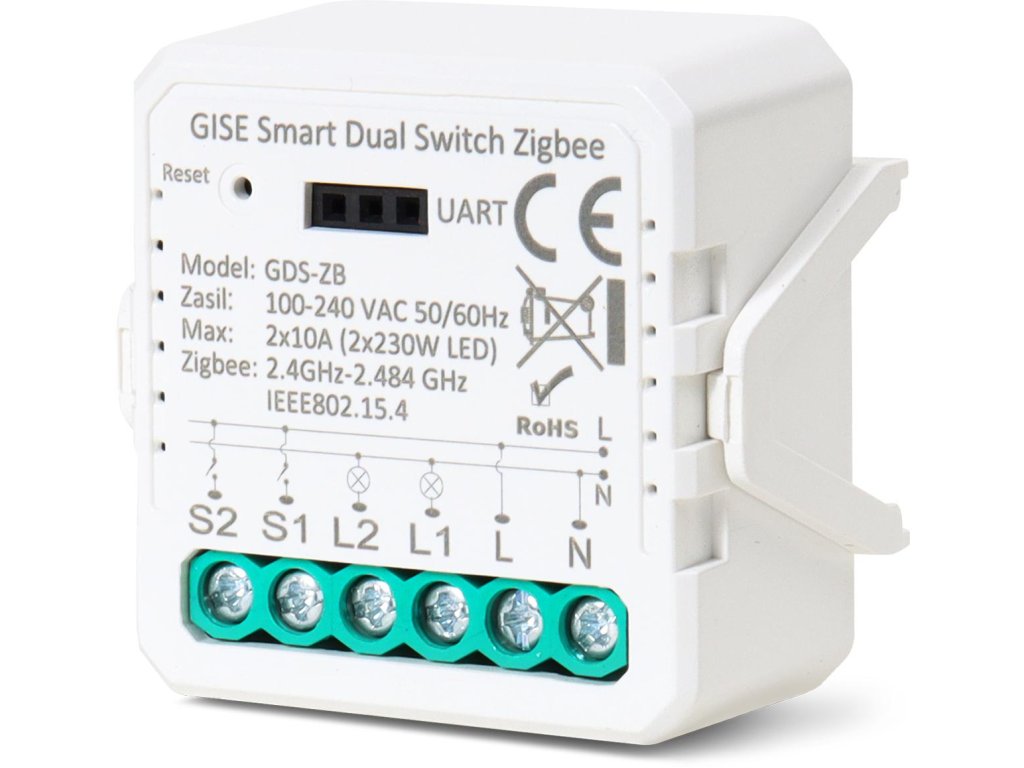 Gise SMART Dual Switch - duálne relé osvetlenia Zigbee kompatibilné s aplikáciou TUYA