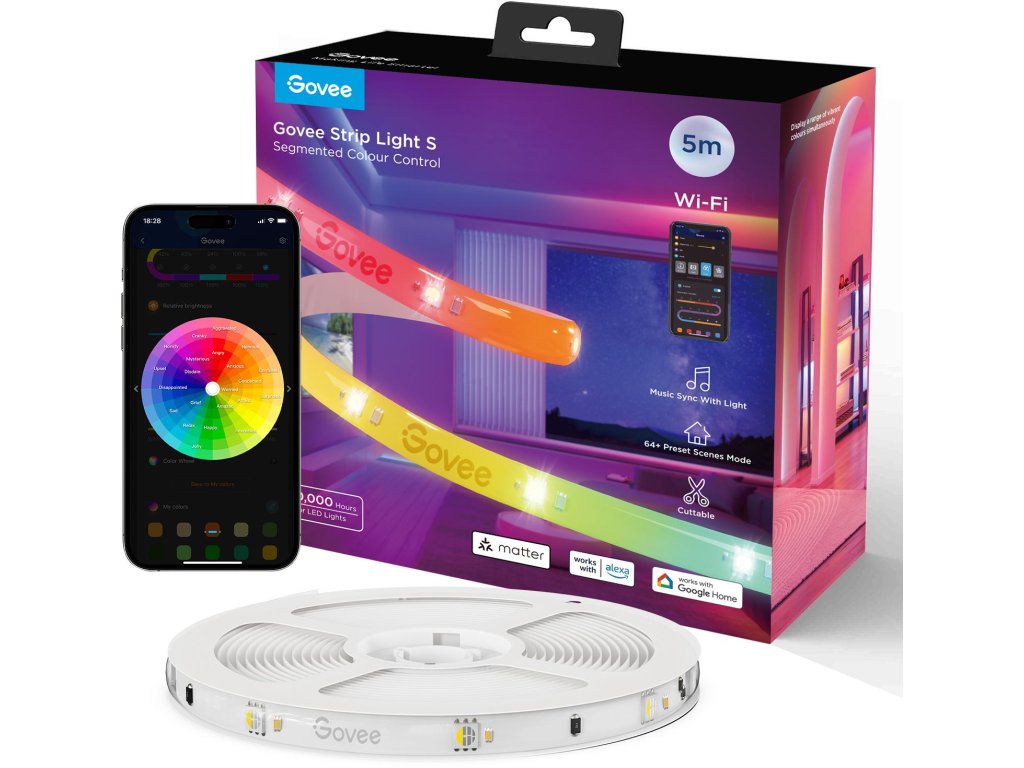 Vďaka technológii RGBIC LED pásik Govee zobrazuje 16 miliónov farieb, čo umožňuje vytvárať jedinečné svetelné efekty. Na rozdiel od tradičných pások umožňuje RGBIC segmentové ovládanie, čím do každej miestnosti vnesie dynamický a viacfarebný akcent. Priehľadná ochranná vrstva zvyšuje odolnosť pásky voči poškodeniu a zároveň zachováva intenzitu farieb.