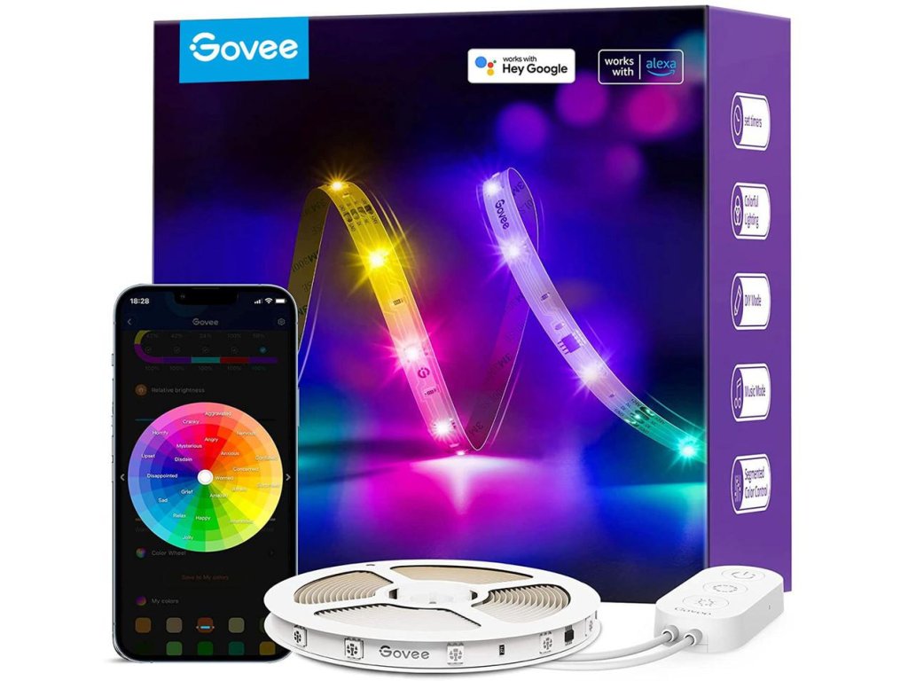 - Spôsoby ovládania: hlasové ovládanie (Alexa, Google Assistant), aplikácia Govee Home (Wi-Fi + Bluetooth)