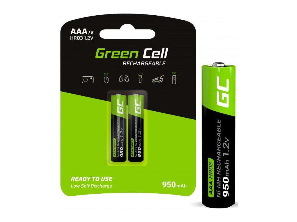 - Originálne nikel-metalhydridové dobíjacie batérie AAA spoločnosti Green Cell kapacity 950 mAh a napätie 1,2V