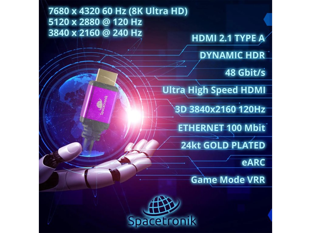 HDMI 2.1 8K Spacetronik SH-SPR015 1,5 m kábel