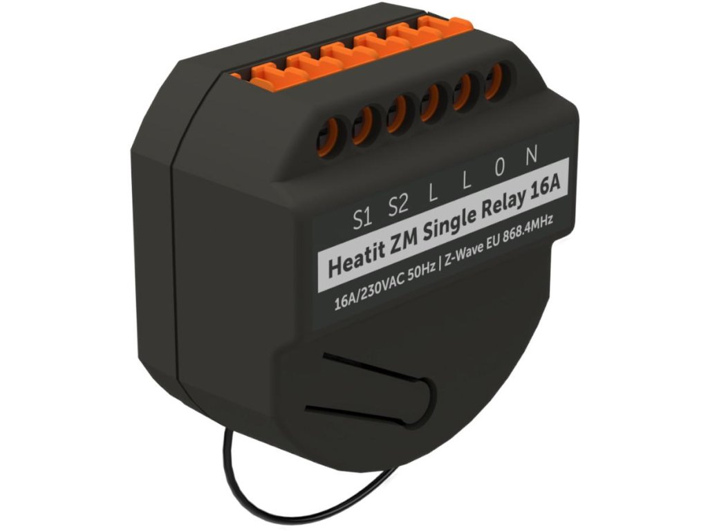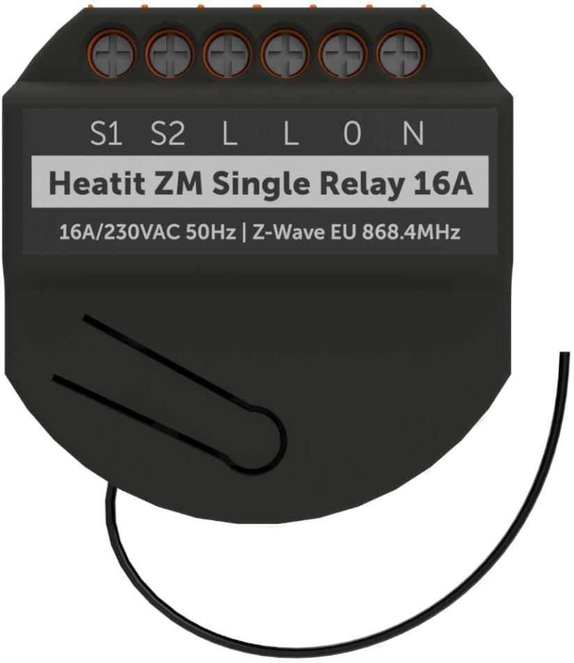 Heatit ZM Single Relay je 16A inteligentné relé vhodné pre všetky typy odporových záťaží. Relé umožňuje používateľovi ovládať záťaž prostredníctvom siete Z-Wave alebo pomocou externého spínača.