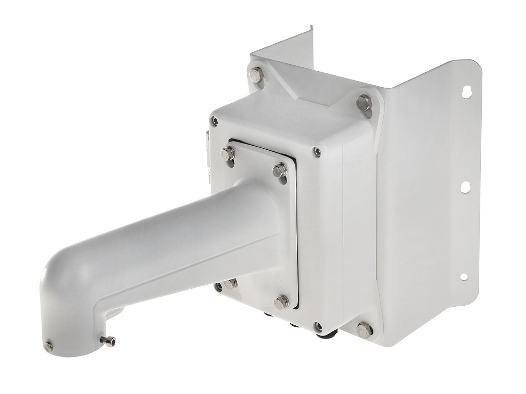 Rohový kovový držiak Hikvision na inštaláciu kamier PTZ. Držiak je vybavený revíziou v ramene a rozvodnou skrinkou. Vhodné pre modely: