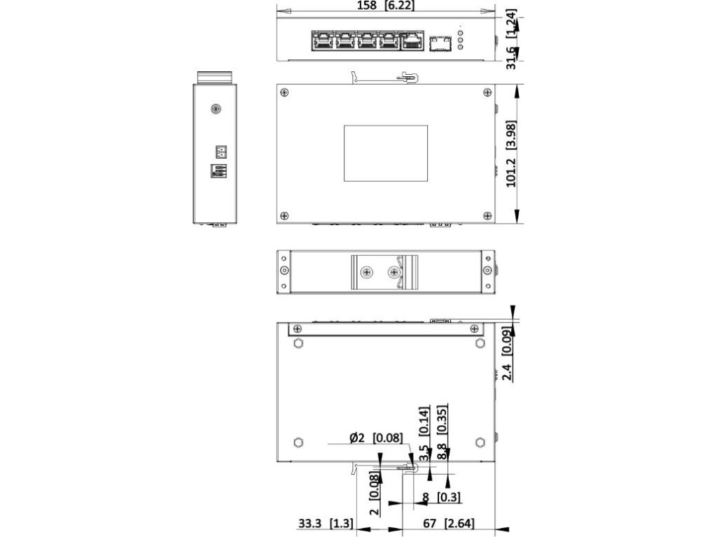 | Porty | 4 × porty PoE 10/100 Mb/s, 1 × gigabitový port RJ45, 1 × gigabitový optický port |