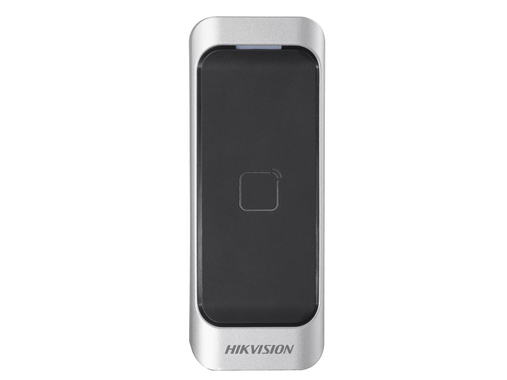 Hikvision DS-K1107AM je čítačka kariet a kľúčeniek Mifare (13,56 MHz), ktorá je určená na používanie s externými ovládačmi (odporúčame rad Hikvision DS-K2600T). Čítačka kariet je vyrobená v príslušnom stupni krytia (IP65), takže ju možno inštalovať vo vonkajšom prostredí bez dodatočnej ochrany.