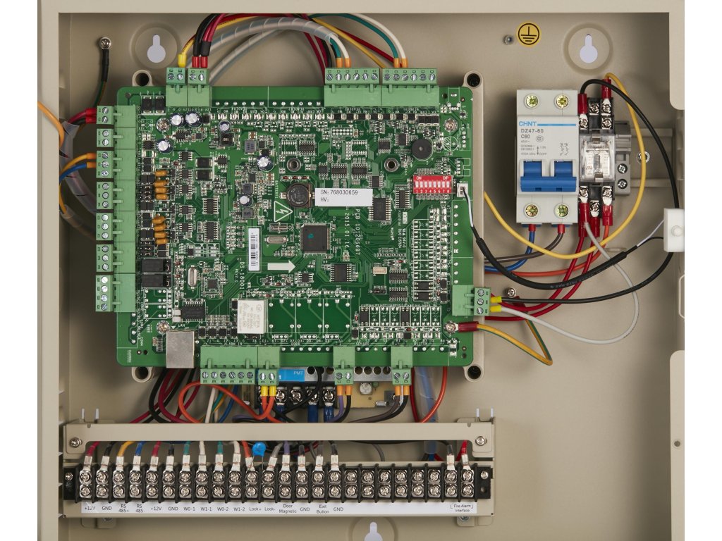 - Podporuje alarm sabotáže čítačky kariet, alarm nezabezpečených dverí, alarm násilného otvorenia dverí, alarm časového limitu otvorenia dverí, alarm násilného otvorenia karty a kódu, alarm uzamknutého zoznamu a alarm pri pokuse o nelegálne pretiahnutie karty cez čítačku