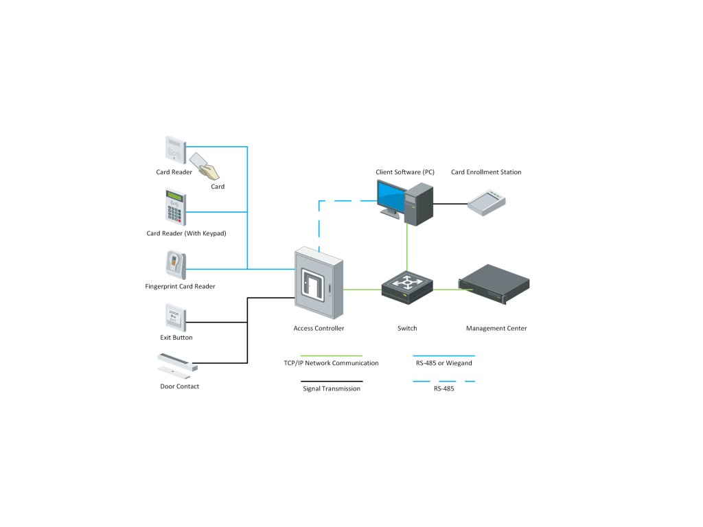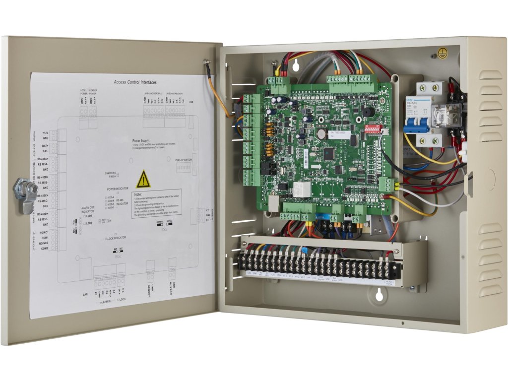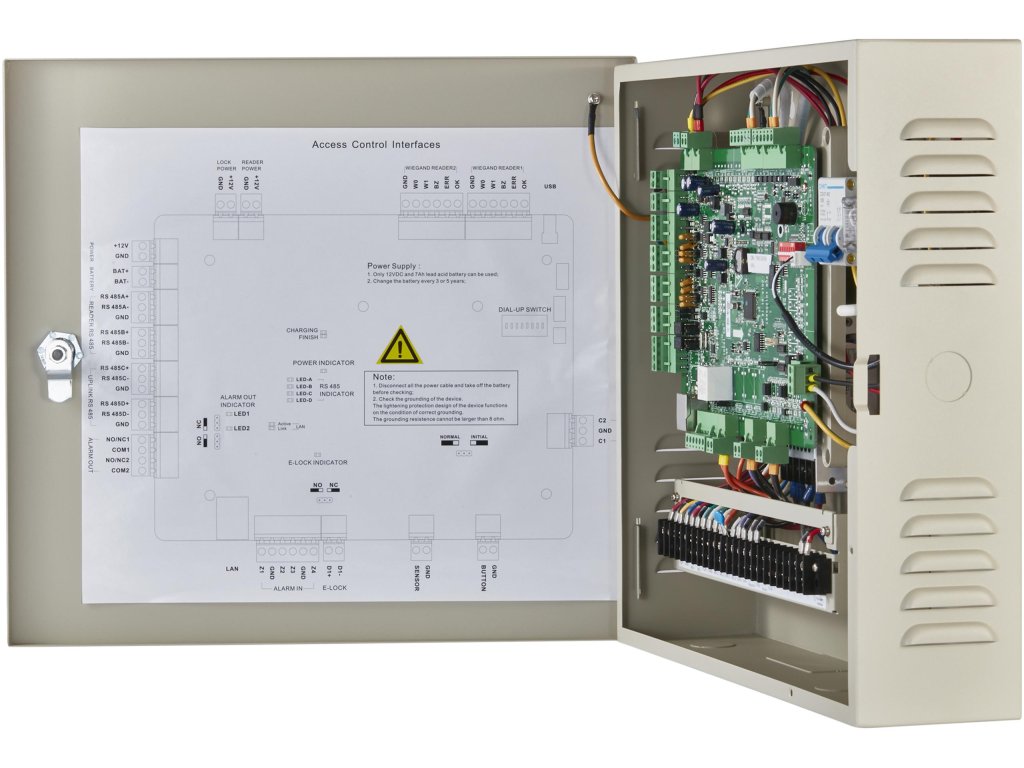 Prístupový radič DS-K2600T obsahuje sieťové rozhranie a rozhranie RS-485, ktoré podporuje komunikačné protokoly TCP/IP a RS-485. Komunikačné údaje sú šifrované na zvýšenie bezpečnosti systému. Riadiaca jednotka podporuje aj prevádzku v režime offline a je vybavená prepínačom odolným proti neoprávnenej manipulácii (sabotáži).