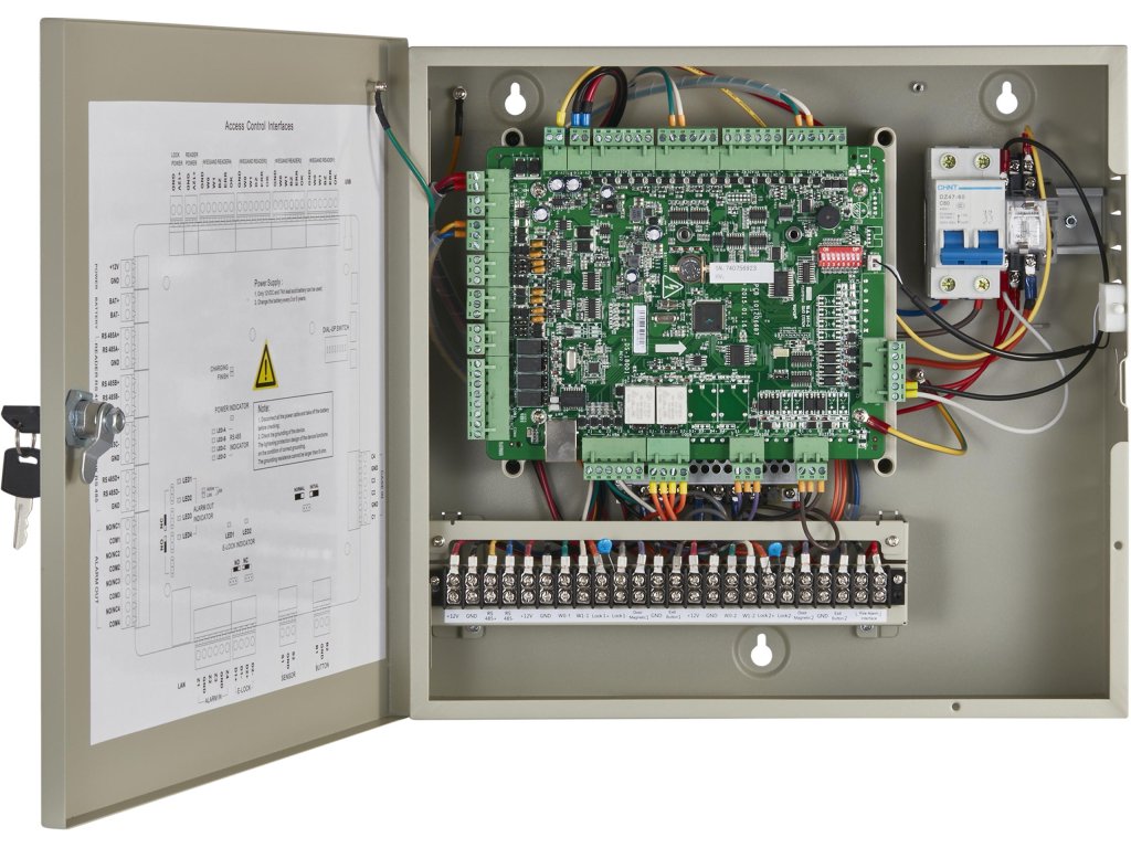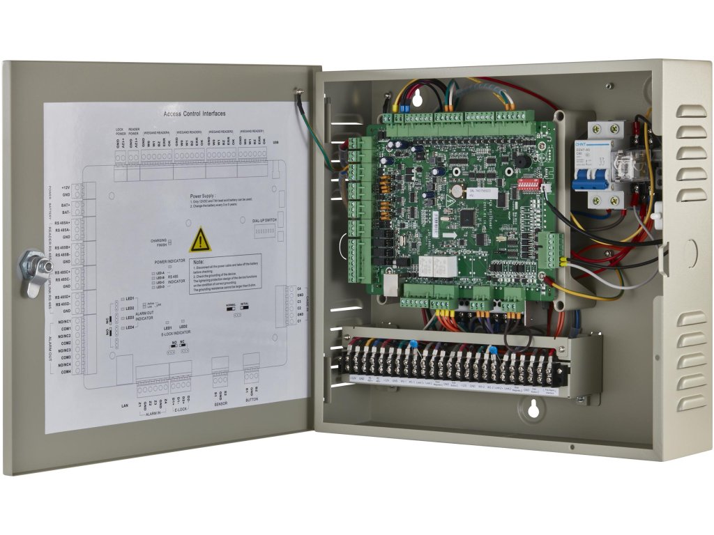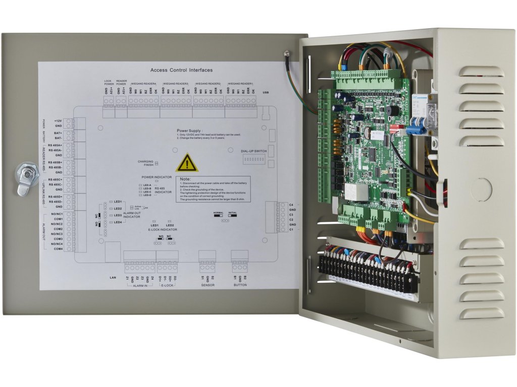 - Čítačky kariet: 4 čítačky pre rozhranie RS485; 4 čítačky pre rozhranie Wiegand