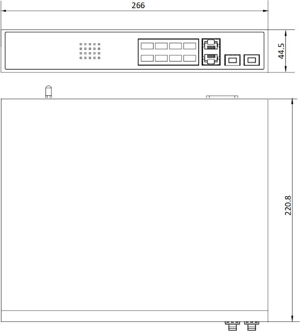 - 8 × 100 Mbps PoE RJ45 port, 2 × gigabitový kombinovaný port.