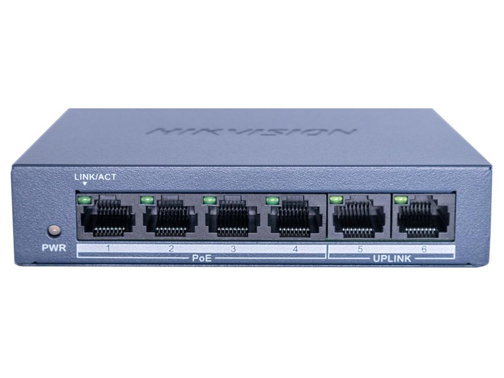 - Počet portov: 4 porty PoE a 2 porty uplink na jednoduché pripojenie k NVR/DVR a prístup na internet.