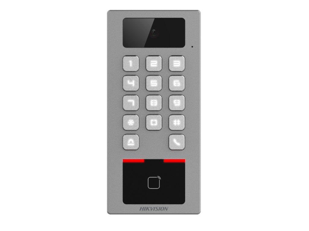 Terminál Hikvision DS-K1T502DBWX-C je jedinečné riešenie, ktoré ponúka ovládanie prechodu aj prevádzku IP videovrátnika v jednom zariadení. Vďaka tomu je ideálny na komplexné zabezpečenie priechodov v kanceláriách, školách, verejných budovách atď. Zariadenie umožňuje samostatnú aj sieťovú prevádzku. Multifunkčné overovanie umožňuje uvoľnenie dverí po načítaní kódu PIN alebo bezkontaktnej karty/zámku.