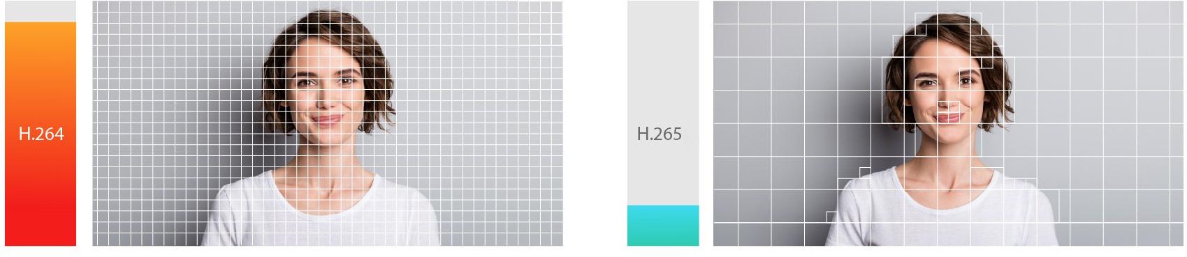 Záznamník používa moderný kompresný štandard H.265ktoré výrazneznižuje spotrebu šírky pásma a množstvo využívaného miesta na disku v porovnaní s H.264. To predlžuje čas archivácie záznamov a optimalizuje prevádzku celého monitorovacieho systému.