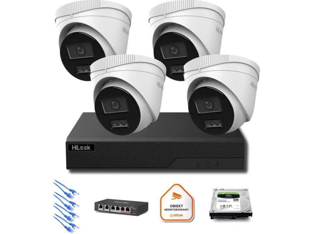 Zestaw monitoringu IP HiLook 8MP – 4x kamera IPC-T280HA-LU + NVR 4CH + dysk 2TB | 4K | Smart Hybrid Light | PoE