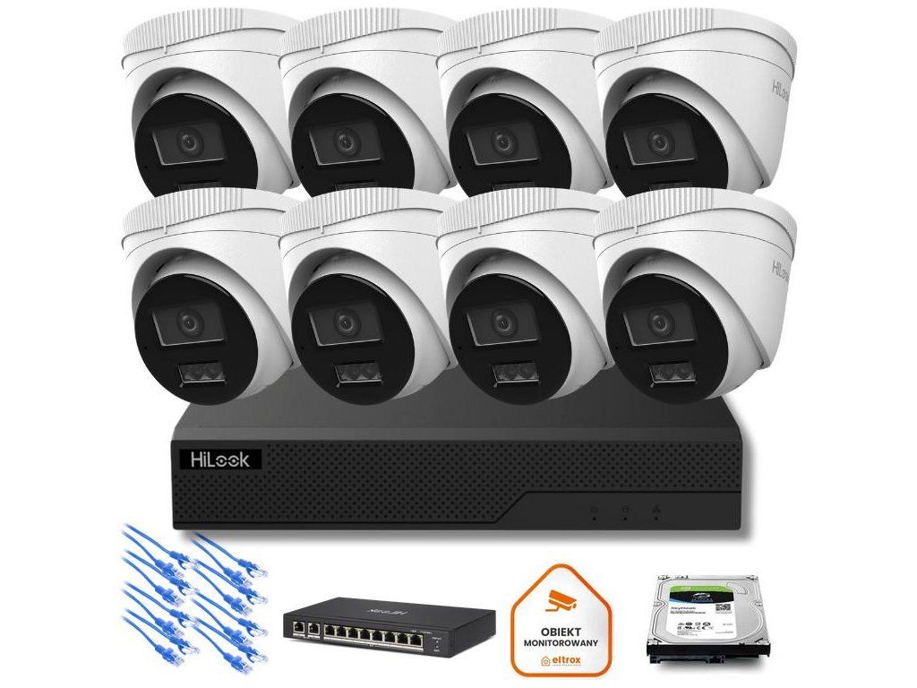 Zestaw monitoringu IP HiLook 8MP – 8x kamera IPC-T280HA-LU + NVR 8CH + dysk 2TB | 4K | Smart Hybrid Light | PoE