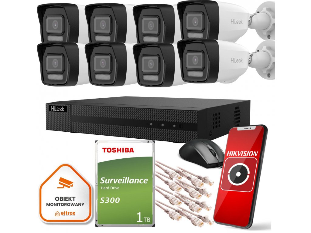 Hilook monitorovacia súprava 8 IP kamier IPCAM-B2-30DL 1TB disk