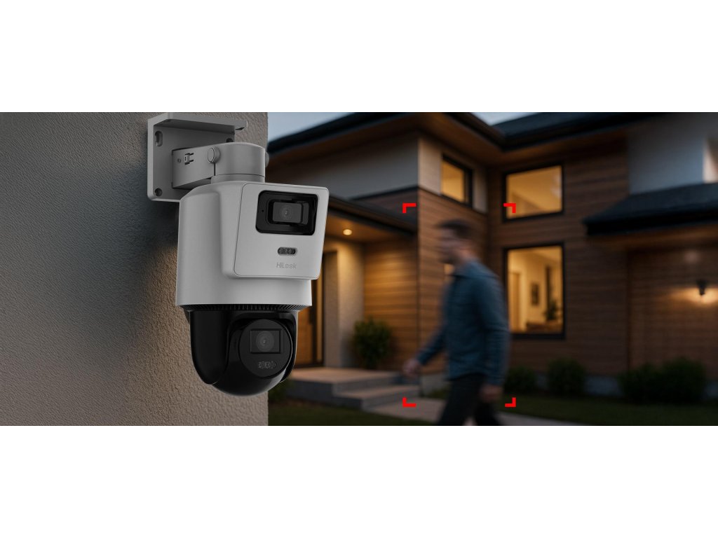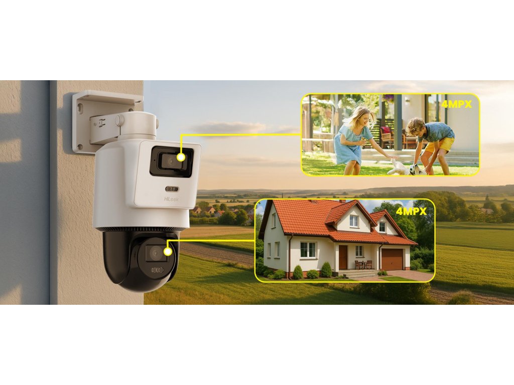 Dva objektívy s rozlíšením 4 MP - jeden na širokouhlé sledovanie, druhý na detailné priblíženie - poskytujú úplné pokrytie sledovanej oblasti bez mŕtvych zón.