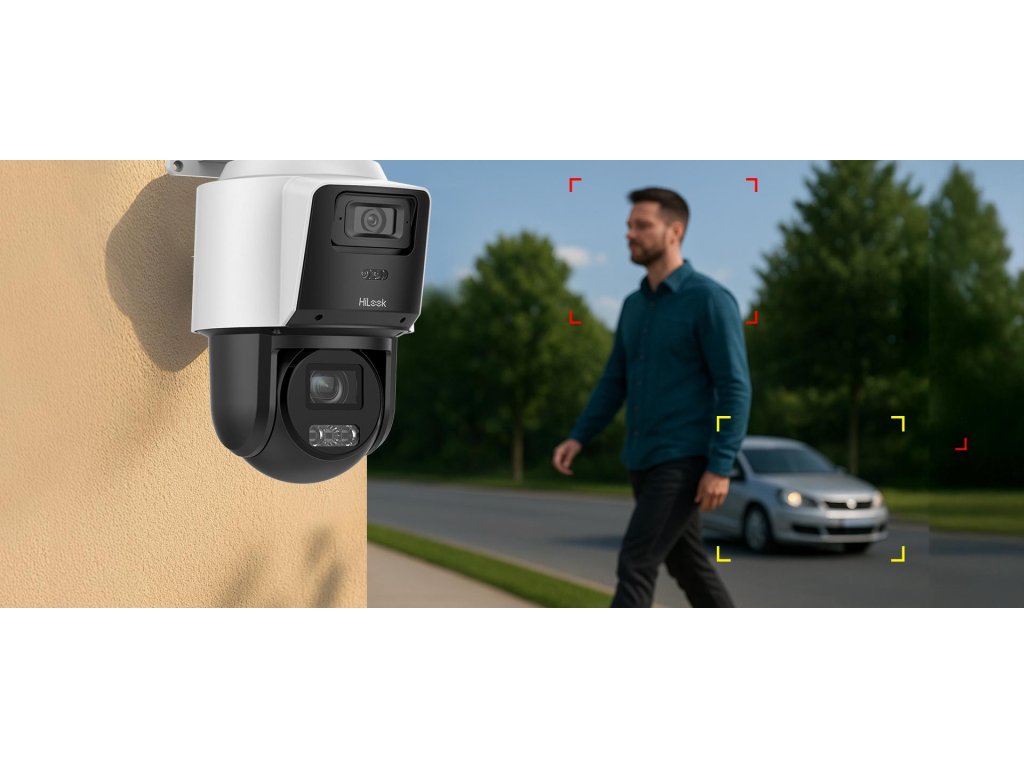 Kanál na strely je vybavenýhybridné osvetlenie (IR + biele svetlo) s dosahom až 30 metrov, zatiaľ čo hlava PTZ máIR do 40 m. Fotoaparát automaticky prispôsobuje osvetlenie podmienkam a zabezpečuje, aby bol obraz jasný aj v noci.
