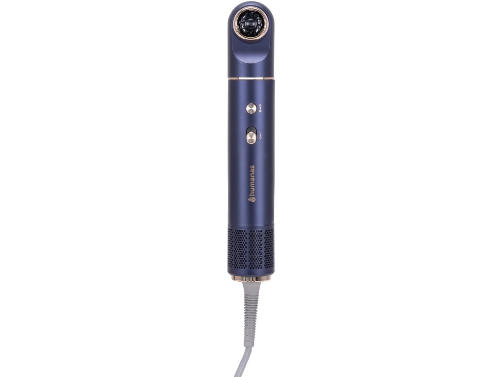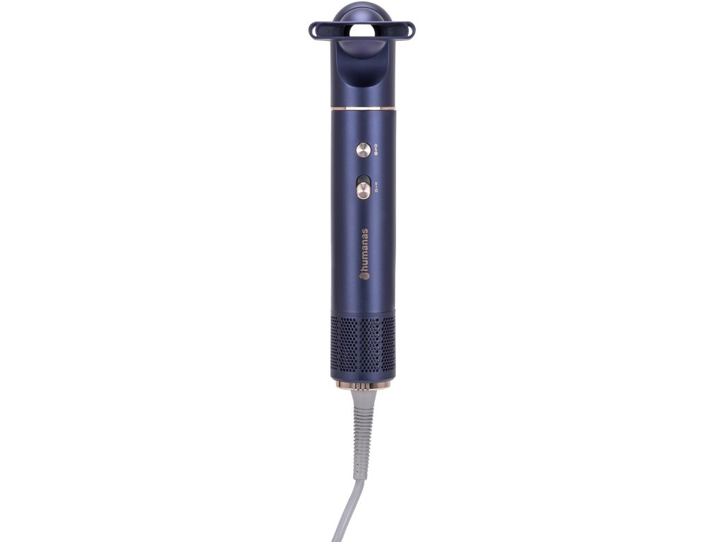 Sušič vlasov Humanas AirTouch HD-AT05 sa vyznačuje neobvyklým dizajnom. Na prvý pohľad pripomína skôr kulmu ako klasické zariadenie na sušenie vlasov. Vďaka absencii vyčnievajúcich prvkov do strán je jeho tvar štíhly a podlhovastý, čo výrazne uľahčuje skladovanie - v domácej skrini aj v cestovnej taške. Ide o praktické riešenie pre tých, ktorí oceňujú poriadok a kompaktné príslušenstvo.