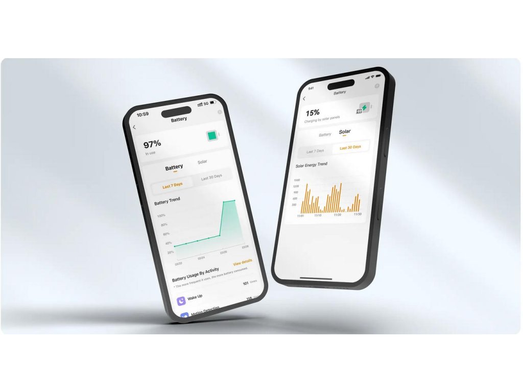 *Solárny panel s výkonom 3 W dokáže počas 2 hodín priameho slnečného žiarenia uskladniť 800 - 1200 mAh energie pre zariadenie; zariadenie spustí 20 videí udalostí za deň (10 cez deň + 10 v noci), pričom spotrebuje približne 40 - 60 mAh energie, takže možno usudzovať, že použitie solárnych panelov môže zabezpečiť neobmedzenú životnosť batérie; skutočná životnosť batérie závisí od režimu výkonu a počtu udalostí spustených za deň.
