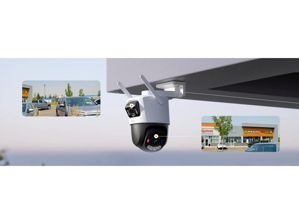 FotoaparátCruiser Dual 2 Pro je vybavený ďalším pevným objektívom umiestneným nad štandardným objektívom PTZ, ktorý umožňuje súčasné monitorovaniedve rôzne oblasti.