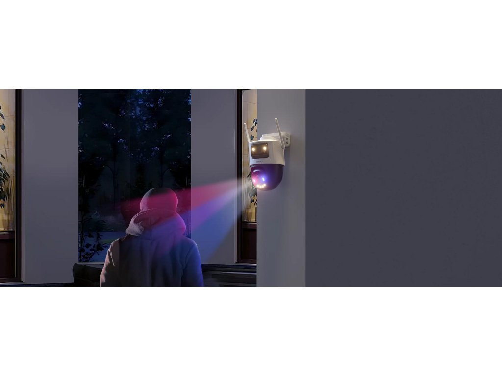 FotoaparátCruiser Dual 2 Pro bol vybavenývýstražné svetlá vyžarujúce červené a modré svetloktoré fungujú oveľa účinnejšie ako tradičné biele poplašné osvetlenie. Keď systém zistí narušiteľa, blikajúce svetlá pôsobia akovizuálny odstrašujúci prostriedok, čím účinne chráni váš domov pred neželanými návštevníkmi.