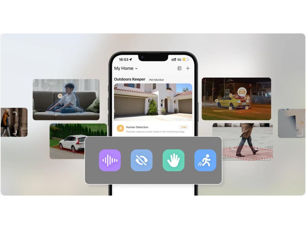 - Pokročilá detekcia AI - inteligentne rozpoznáva osoby a pohyb, čím znižuje počet falošných poplachov.