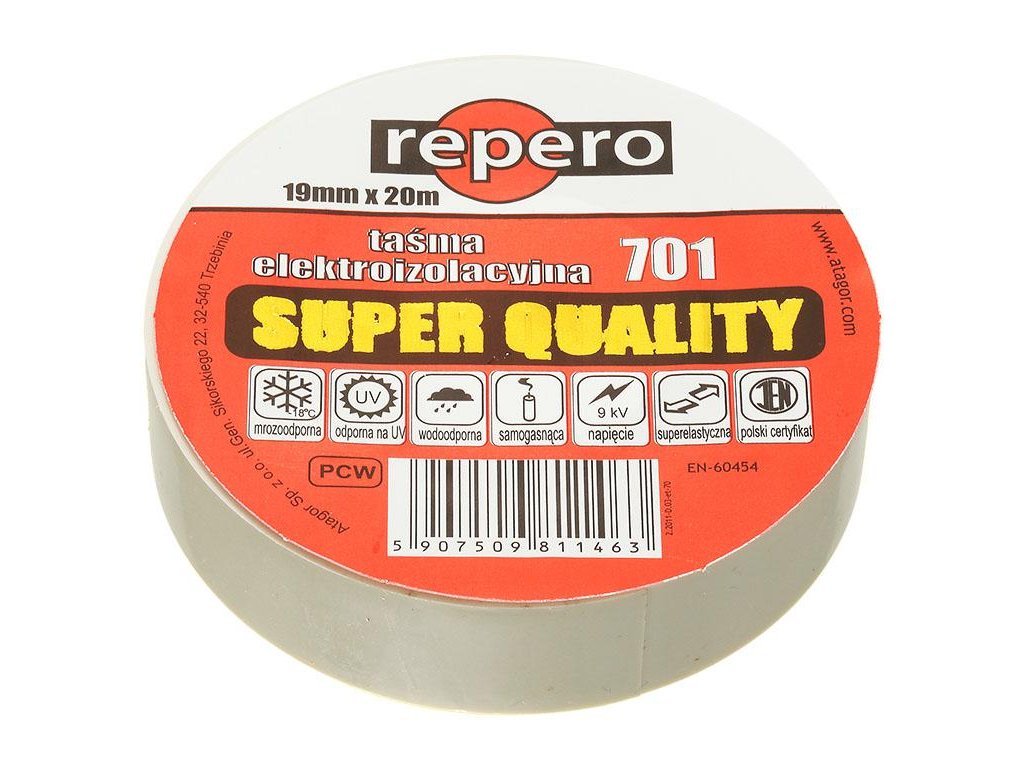 Elektroizolačná páska Repero 701 poskytuje účinnú izoláciu káblov, chráni ich pred mechanickým poškodením a poveternostnými vplyvmi. Vďaka použitiu vysokokvalitného PVC výrobok zaručuje trvanlivosť, pružnosť a odolnosť voči oderu.