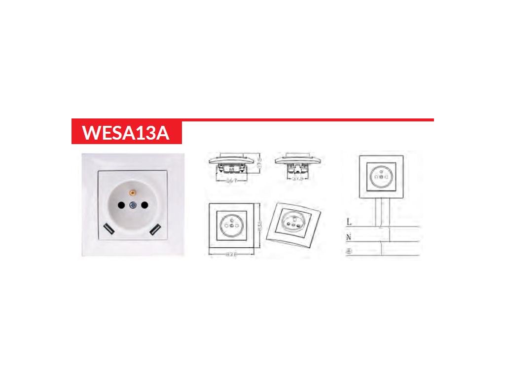 Jednoduchá uzemnená zásuvka s USB - VCX LC 13A biela