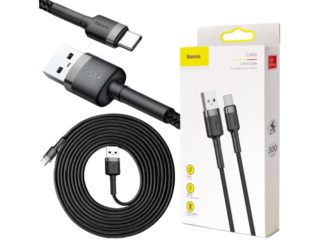 Kábel USB-A -> USB-C Baseus Cafule CATKLF-UG1 300cm 2A QC 3.0 BLACK/GREY IN Nylon sheath