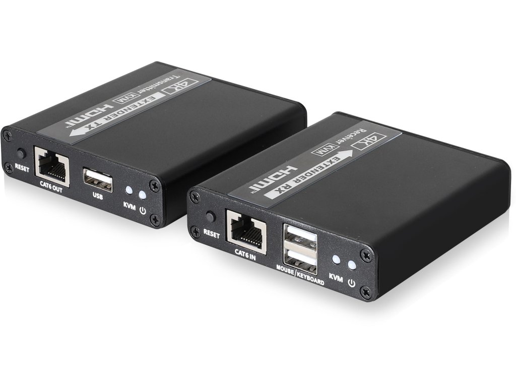 Tento extender HDMI™ KVM obsahuje vysielač a prijímač, ktoré umožňujú prenos signálov HDMI™ až na vzdialenosť 70 metrov pri rozlíšení 1080p cez sieťový kábel Cat6/6A/7. Využíva konfiguráciu pripojenia bod-bod a podporuje KVM. Je ideálny pre vonkajšiu reklamu, monitorovací systém, domácu zábavu, konferencie atď.