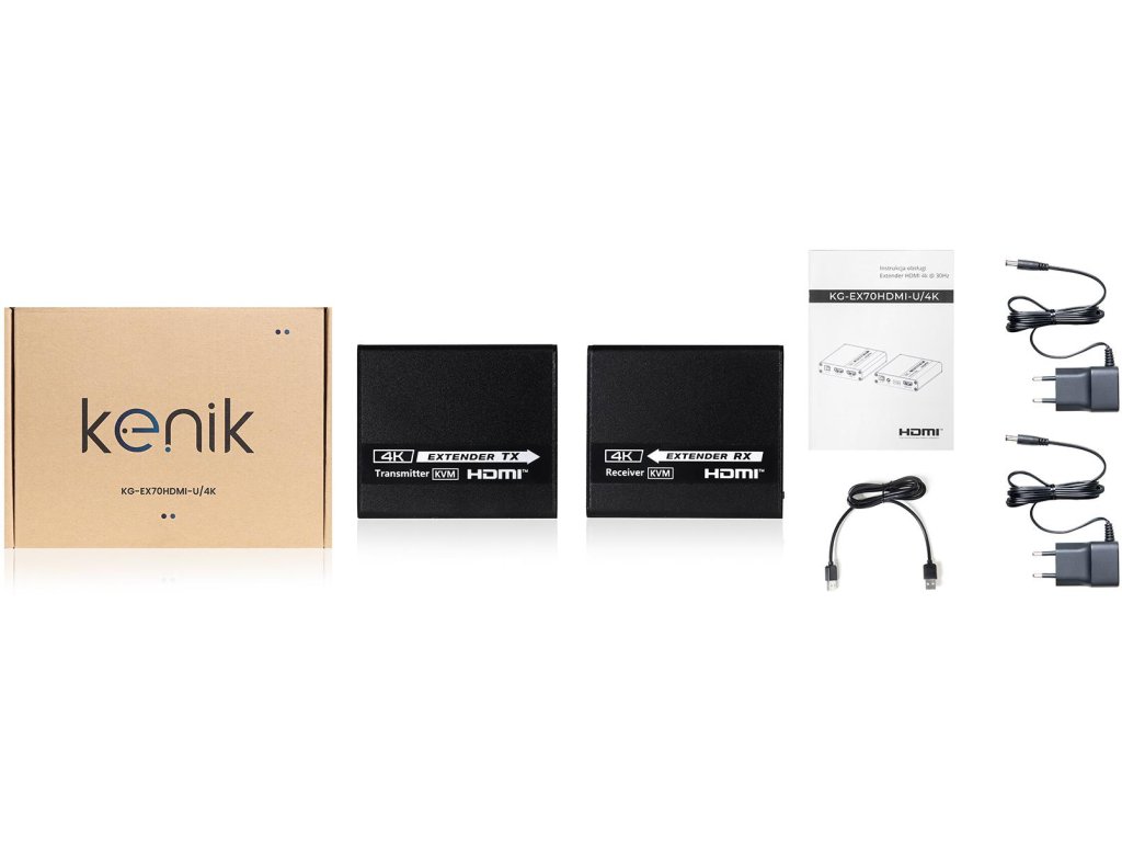 Kenik HDMI extender KG-EX70HDMI-U/4K video + audio + myš cez krútenú dvojlinku