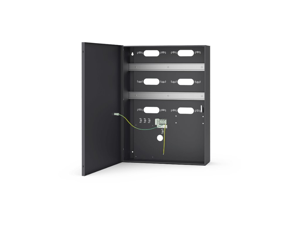 Skriňa je vybavená dvoma lištami DIN, sabotážnym spínačom a odpojovačom napájania s poistkou. Prístup do vnútra skrine je chránený skrutkovacími dvierkami. Na dvere možno voliteľne namontovať zámok na kľúč. Skriňa je vyrobená z oceľového plechu s práškovou povrchovou úpravou v antracitovo sivej farbe.