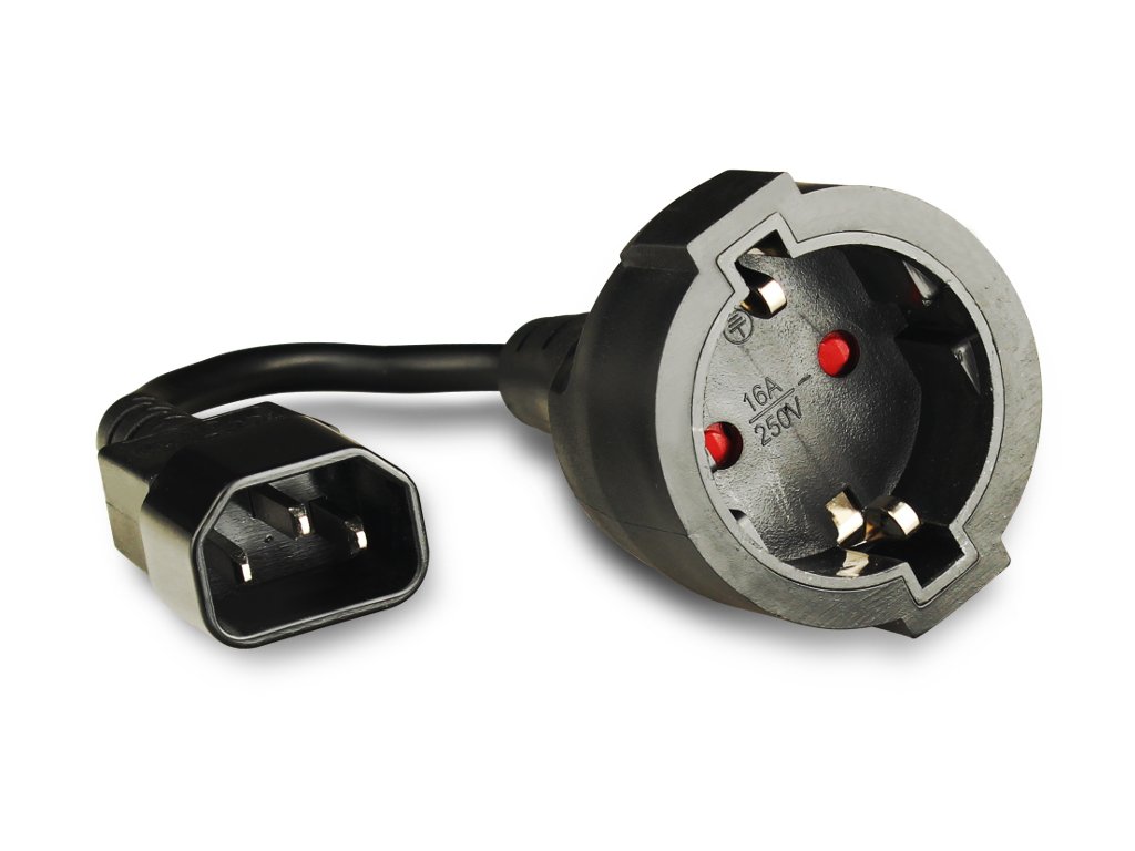 Napájací adaptér C14 -> Schuko pre UPS je riešenie na pripojenie zariadenia s typickou zástrčkou k zdroju neprerušovaného napájania (UPS) so zásuvkami C13.