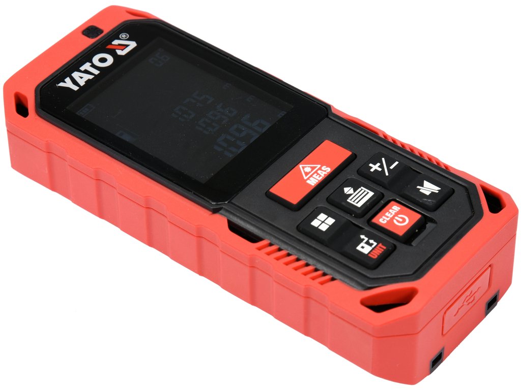 Laserový merač vzdialenosti na rýchle a presné meranie vzdialenosti od 0,2 do 40 m. Funkcie: kontinuálne meranie, výpočet plochy a objemu, 3 typy pythagorovských meraní, pamäť na 20 výsledkov, variabilný počiatočný bod, zmena jednotiek merania, kontinuálne meranie uhla sklonu pri meraní vzdialeností, robustný displej, stupeň krytia IP65, napájanie 3 batériami AAA NiMh cez USB, zobrazenie stavu batérií, zosilnený kryt, krátka šnúrka na jednoduchú manipuláciu.