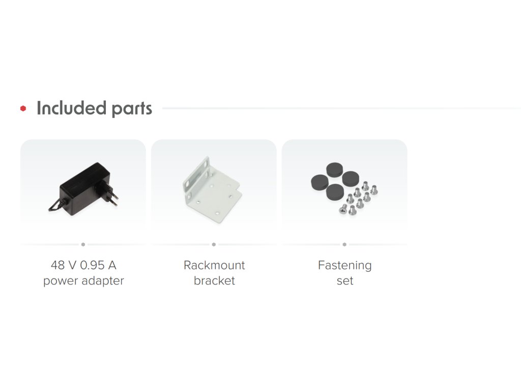 Ponúkaný produkt je vybavený 16 portami Gigabit Ethernet a 2 slotmi SFP+ (10 Gb/s). Ethernetové porty sú rozdelené do 2 sekcií, pričom každý prepínací čip má 8 portov.