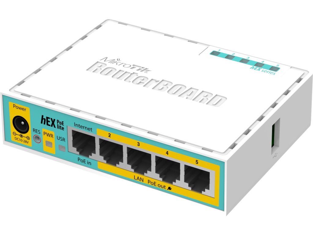 RB750UP je kompaktný stolný router od spoločnosti MikroTik. Je vybavený 5 rýchlymi ethernetovými portmi a portom USB 2.0 a môže byť napájaný prostredníctvom PoE s napätím 8 - 30 V. Okrem toho sú na portoch 2 - 5 výstupy PoE, ktoré možno použiť na napájanie iných zariadení. Napätie na výstupe PoE je rovnaké ako napätie dodávané do celého zariadenia, ale maximálny prúd je 500 mA na port.
