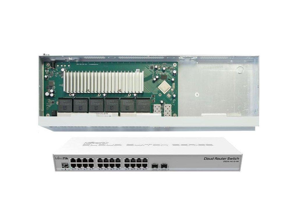 Prepínač MikroTik Cloud Router CRS326-24G-2S+RM je zariadenie založené na konštrukcii prepínača.